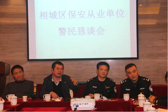 2015年11月19日14:30在江蘇康平保安公司會議室舉行:相城區(qū)保安從業(yè)單位警民懇談會,與會的有市公安局治安支隊保安監(jiān)管大隊的朱大、戴大,公安相城分局治安大隊的楊大、賀大、吳警官,還有相城區(qū)各保安行業(yè)的企業(yè),通過懇談會,深刻領(lǐng)悟市局、分局領(lǐng)導(dǎo)有關(guān)指示精神!今年10月—12月省公安廳開展保安市場專項整治活動,公司積極做好:治安信息員、法制宣傳員、義務(wù)巡邏隊員工作,爭取完成省公安廳要求2016年6月底前所有在崗保安員必須持證上崗的指示,向兄弟單位學(xué)習,不斷完善服務(wù)質(zhì)量,提高公司核心競爭力,走品牌化道路的戰(zhàn)略目標前行!